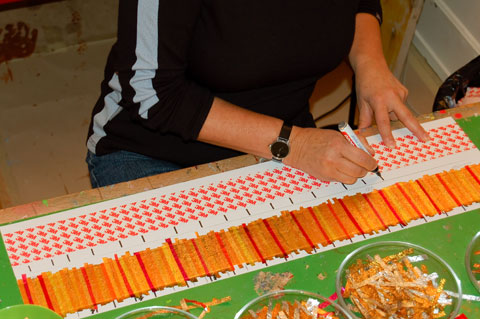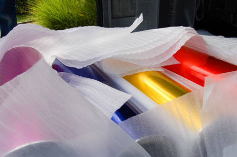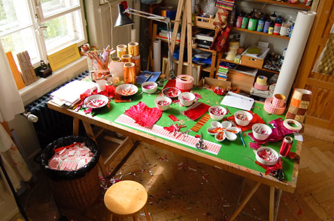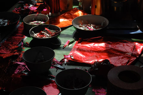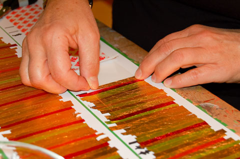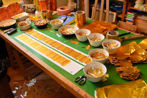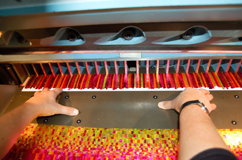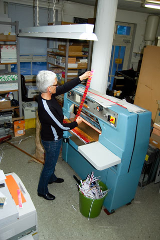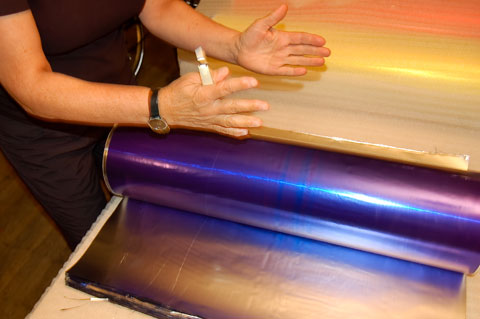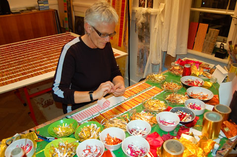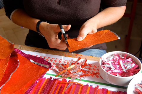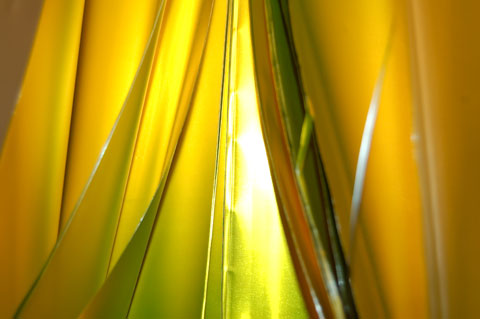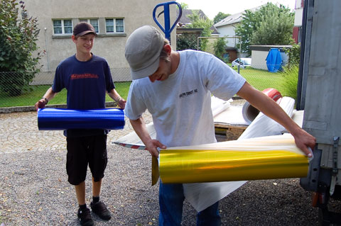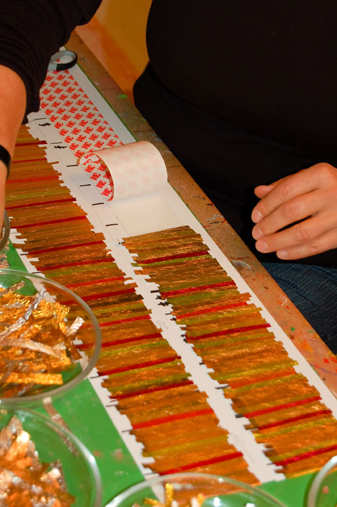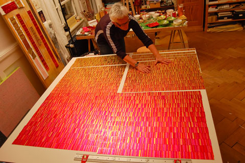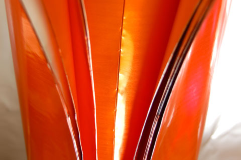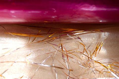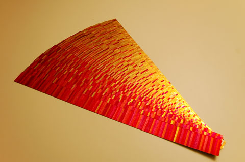 Das Werk ist eine künstlerische Umsetzung des Themas Verbindung auf mehreren Ebenen. Aus glänzenden Alustreifen in Rot, Pink, Orange und Gold gestaltet, beziehen sich die Bilder einerseits auf das überraschende, bunt schillernde Äussere und Innenleben von Kabeln und Verbindungselementen. Zum anderen schaffen sie sowohl einen Bezug zu den Menschen, die hier arbeiten als auch zu den Kundinnen und Kunden, die kommen und gehen: Kommunikation wird zu Kunst und Kunst zu Kommunikation.