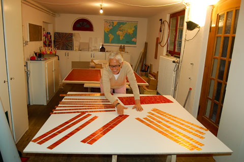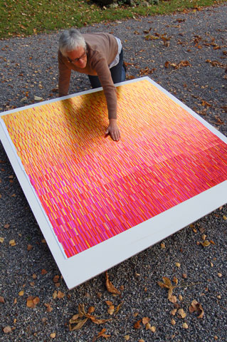 Das dreiteilige Werk «Verbinden – Verbunden» wurde für den Eingang der Huber+Suhner AG, Pfäffikon ZH, die im Bereich Komponenten und Systeme der elektrischen und optischen Verbindungstechnik international tätig ist, geschaffen.