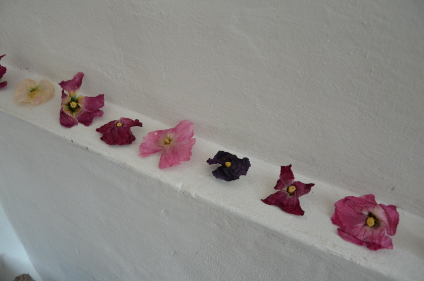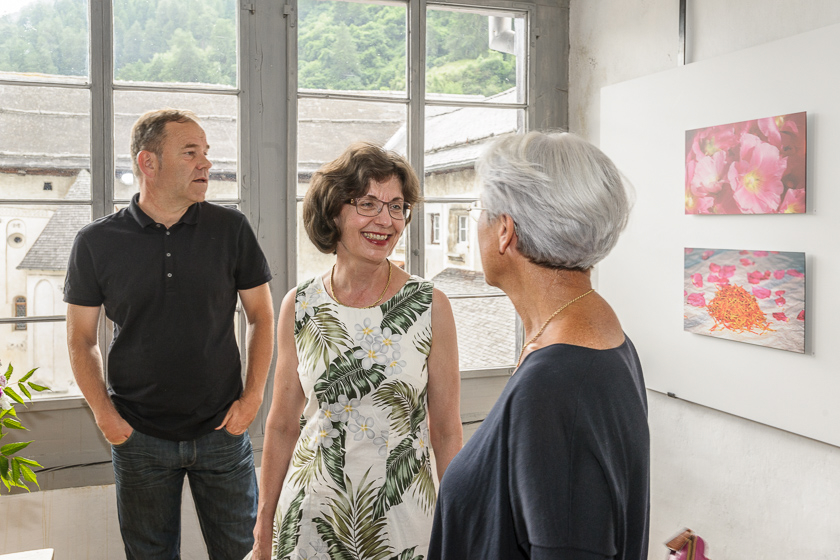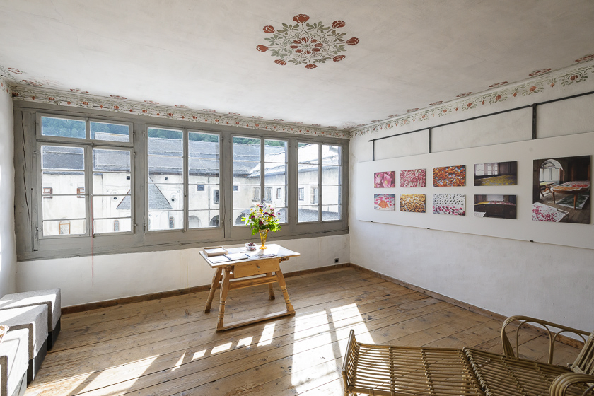 Neben einer Installation in der ehemaligen Räucherkammer im Plantaturm werden im Atelier «Juhée» Fotografien von zum Trocknen ausgelegten Blüten aus dem Klostergarten gezeigt. Die Aufnahmen entstanden 2010 während des Aufenthaltes im Kloster als Artist in Residence.